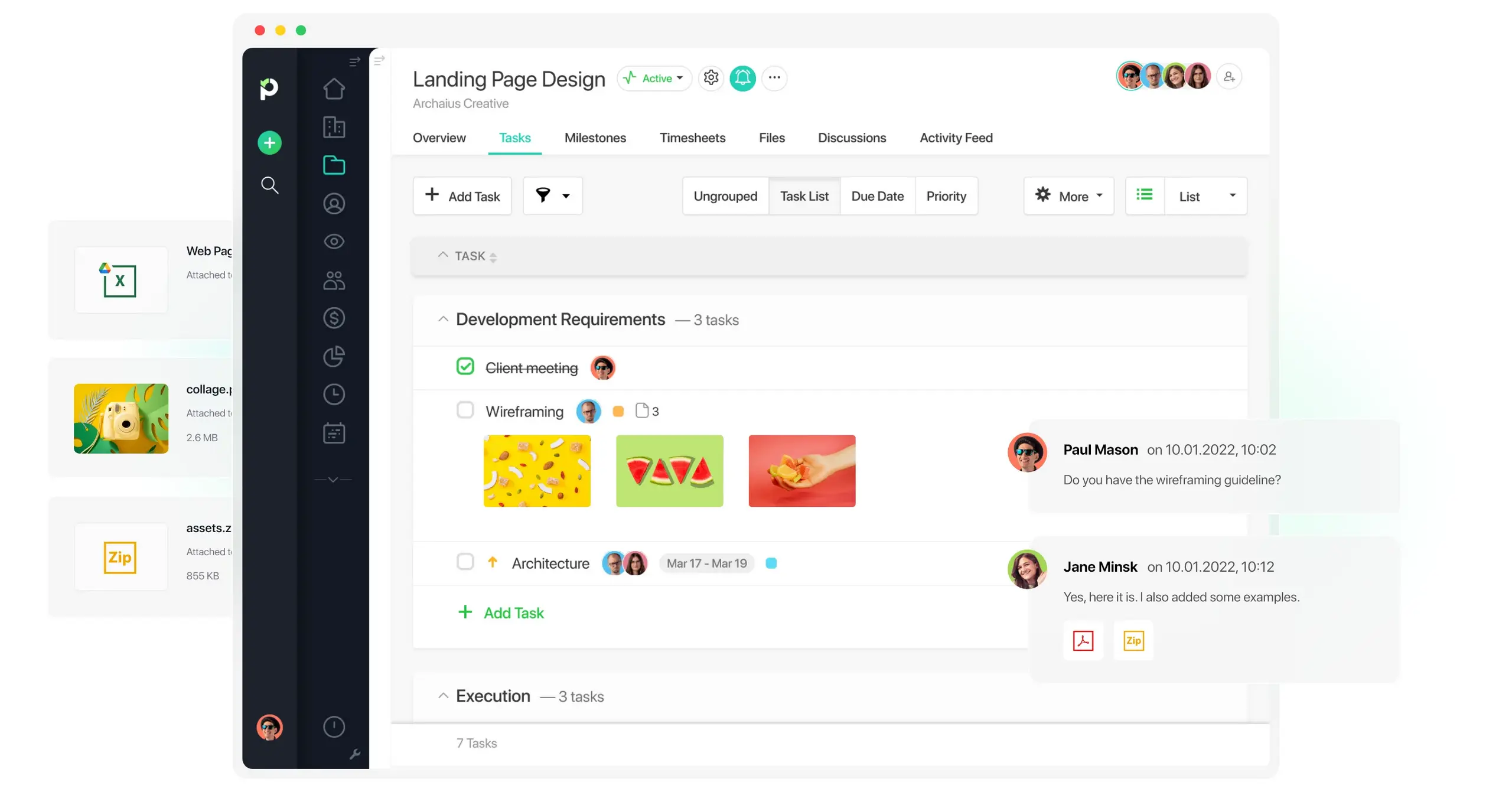 - Task listing/to-do lists: The opportunity to set up and assign tasks and update every task status is critical to keep the team synced while proceeding with the project.