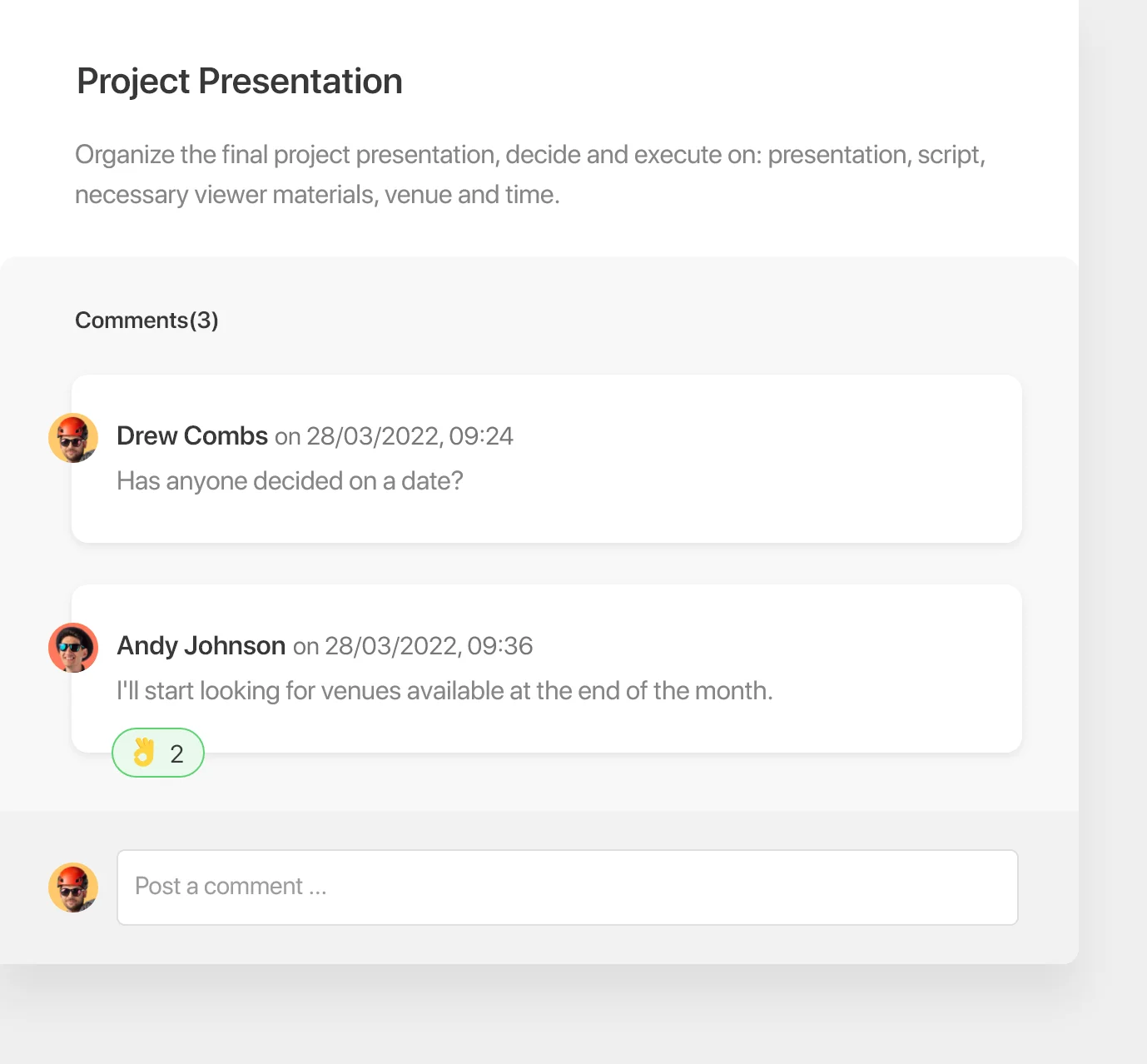 Some project management tools send automatic in-app or email notifications whenever a new change is made, namely when someone posts a comment or marks a task as completed.
