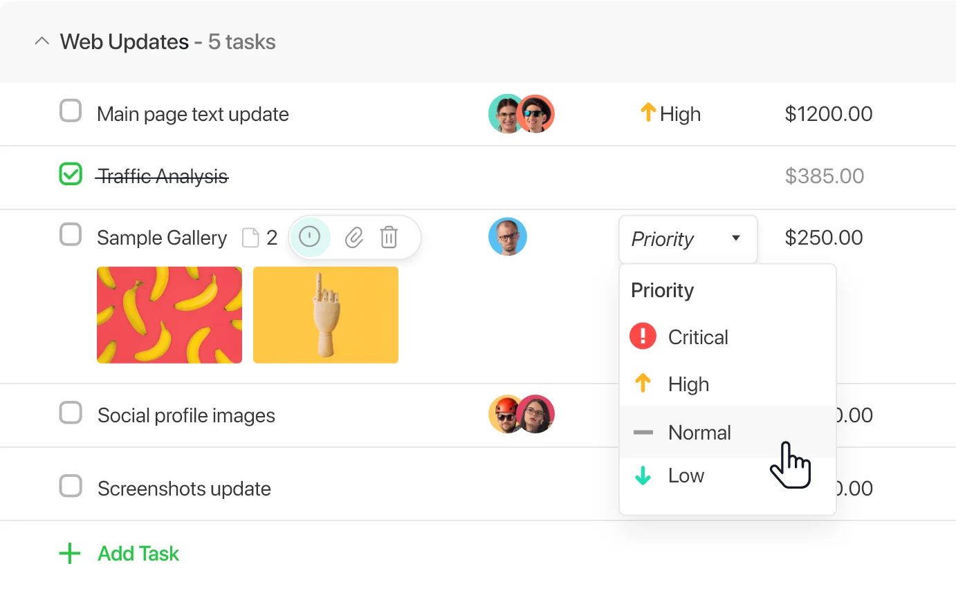 One more indispensable feature of such task management tools is setting Priority levels to avoid confusion and let the team handle tasks one by one.