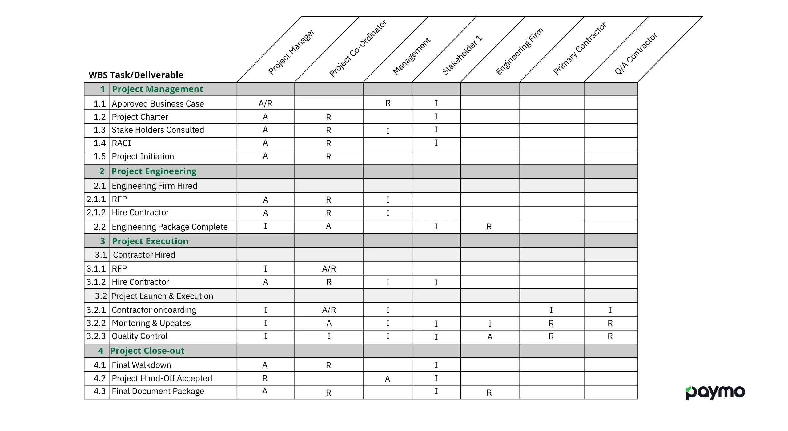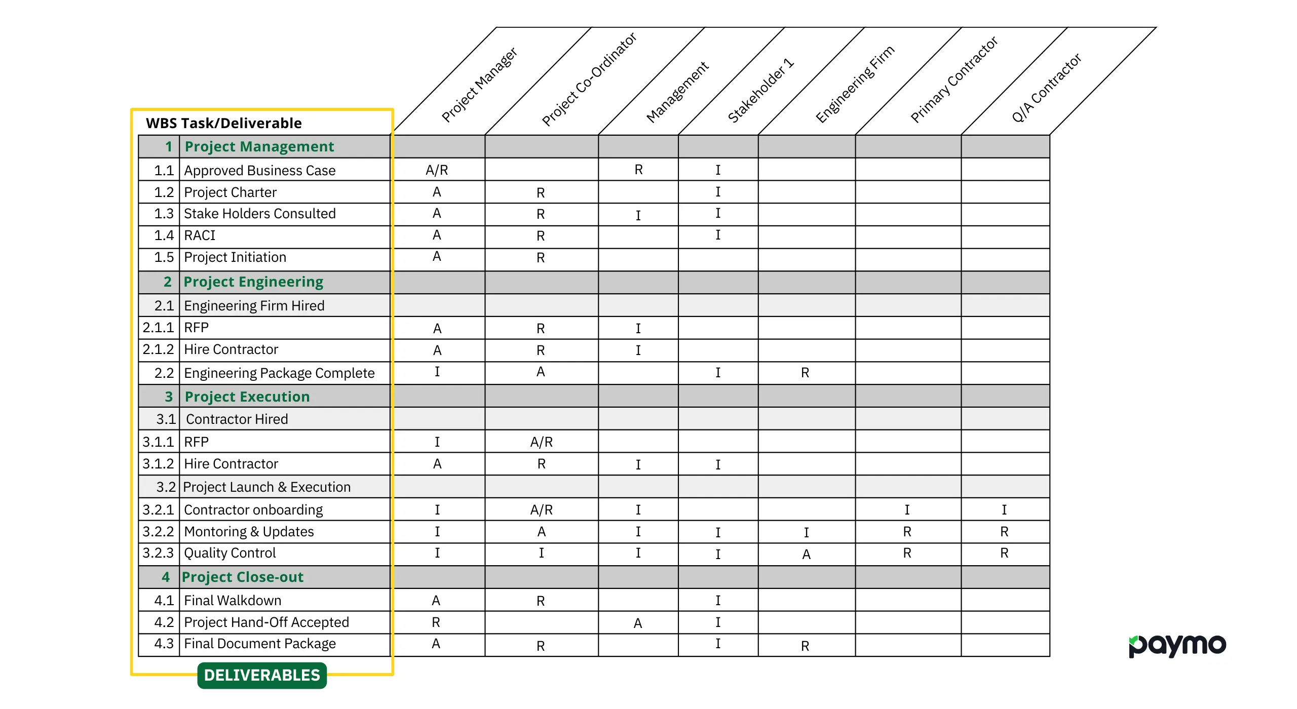 - I recommend using the Work Breakdown Structure numbering throughout all aspects of the project, including the RACI.